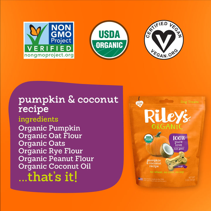 Our limited ingredient, USDA Certified Organic Pumpkin & Coconut Dog Biscuits combine powerhouse ingredients that are rich in vitamins as well as iron and manganese. These delicious treats are a good source of fiber and provide the essential nutrients for healthy skin and coat.