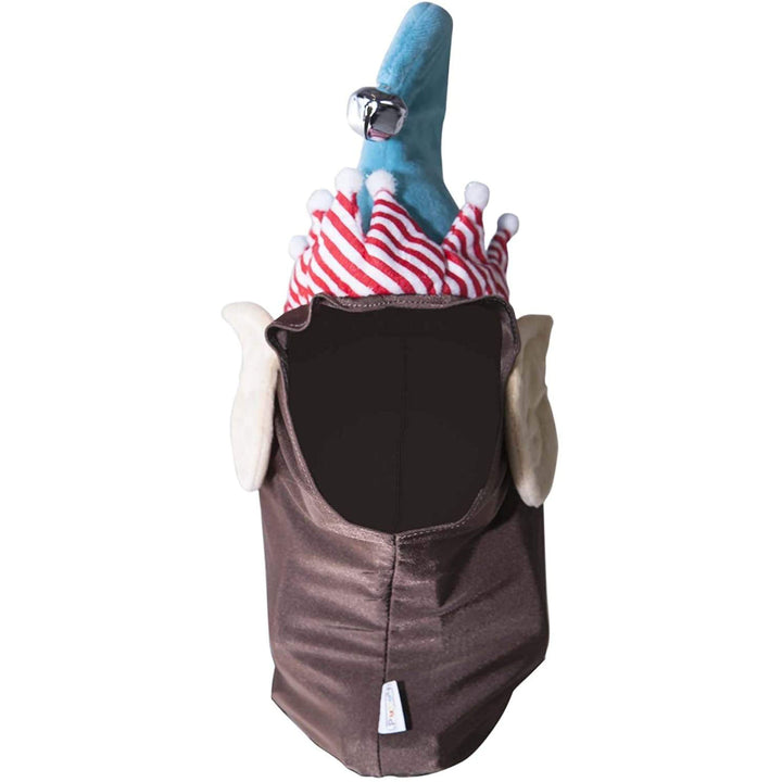 Celebrate your favorite time of year with a little assistance from Santa's helper! Slipped over your pup's head, this elf mask brings good tidings and joy -- topped with a silver bell on top!