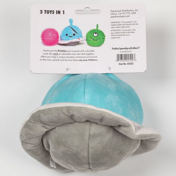 Wrapped in two layers of fabric, your pup can rip off the outer layer to reveal a smily alien. Guess what? Your pup will love the secret hidden prickly ball toy on the inside.