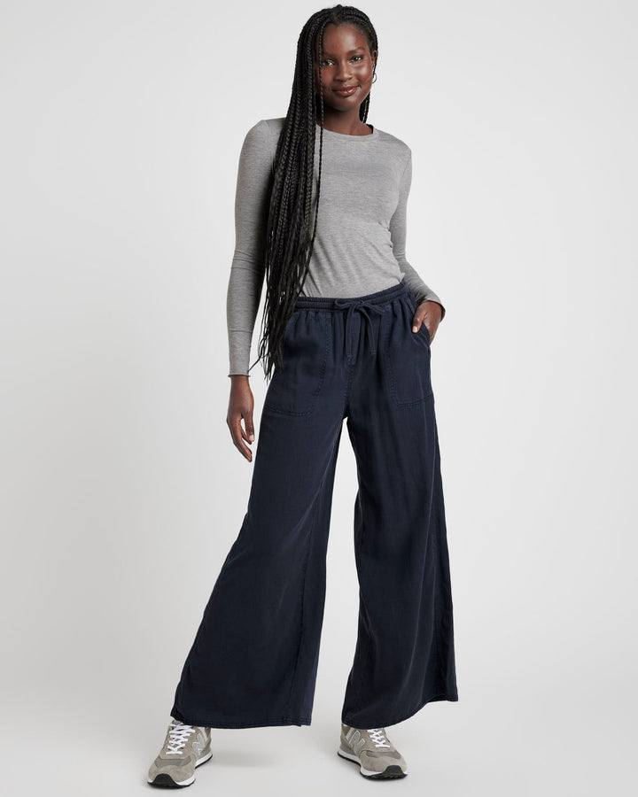 The comfort and ease of our Paula Wide Leg Pant will leave you reaching for it all season long. Made from a breathable linen blend, it's designed with a drawstring, roomy front and back pockets and the most relaxed wide leg ever. Elevate it with a sweater or a layering tee.
