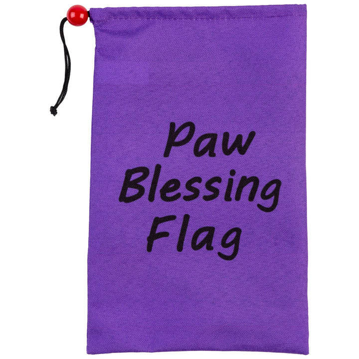 - Includes cloth gift bag which reads: "Paw Blessing Flag"