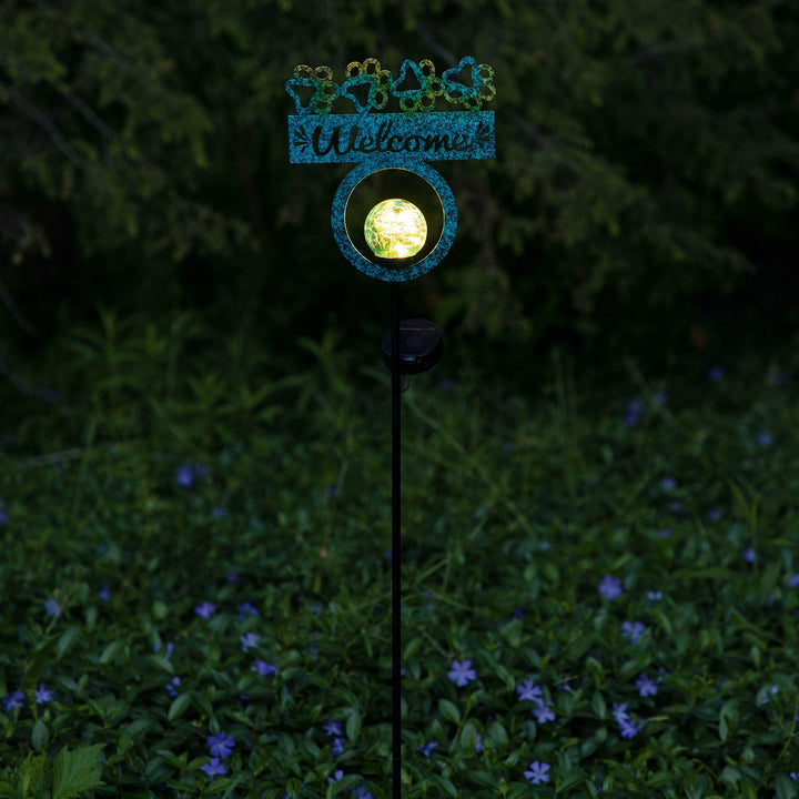 Your home will be even more welcoming with this paw print welcome sign. Greet people and pets alike with the blue and green solar light that can be staked outside your door or in your garden or anywhere you would like people to feel at home.