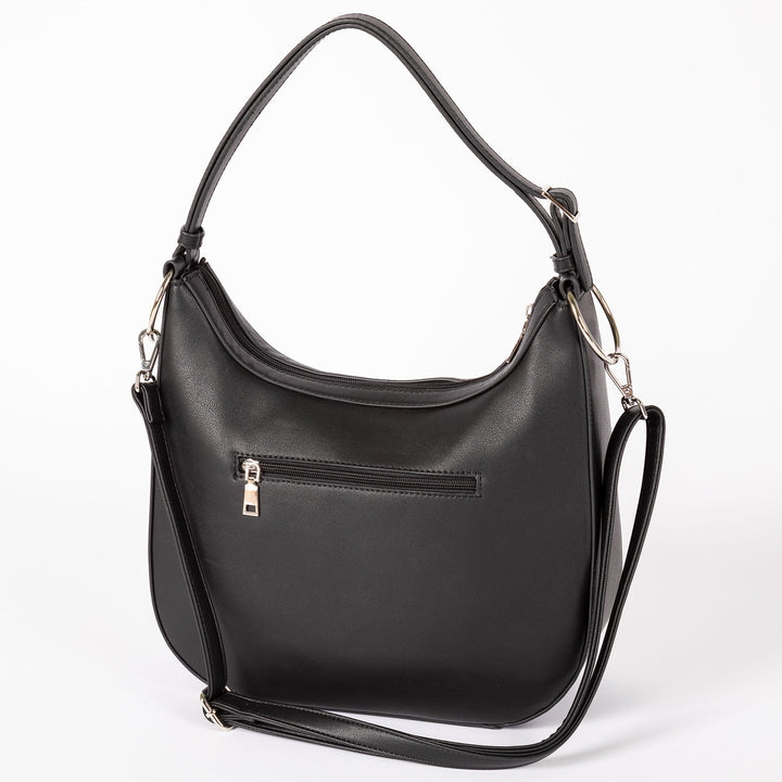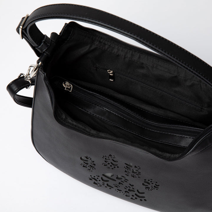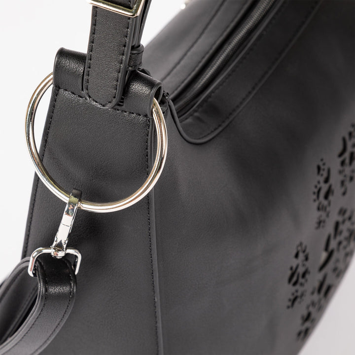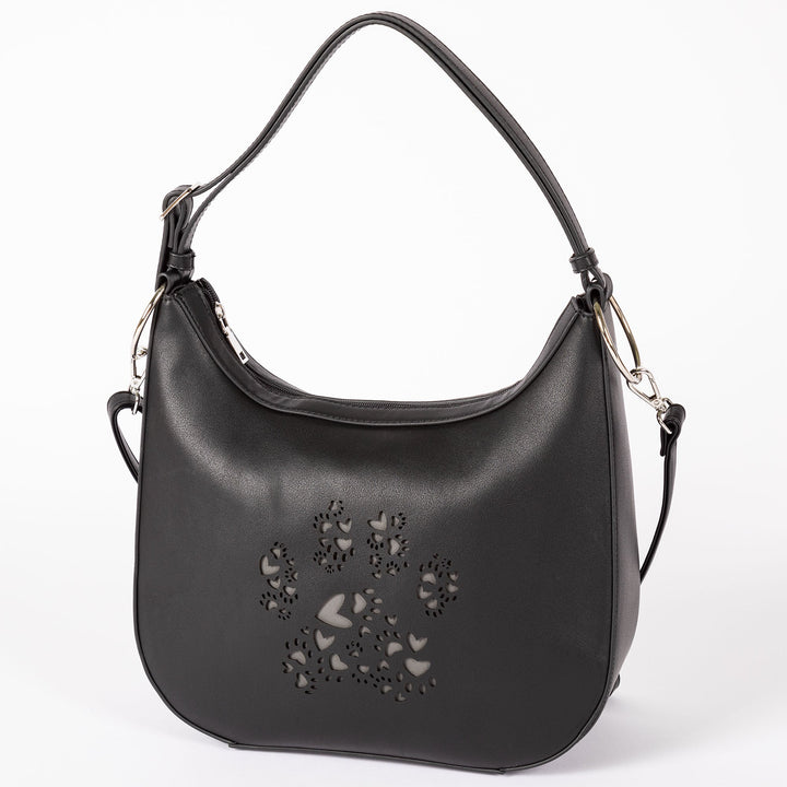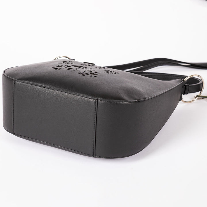 Choose from purple or black for your paw-fect purse. Whether you use over the shoulder or as a crossbody this purse is purr-fect for holding all your essentials in it's multitude of pockets.