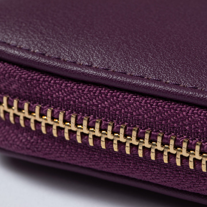 - 8 card slots, zippered pocket, large open pocket, 2 money pockets