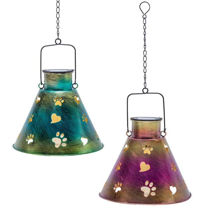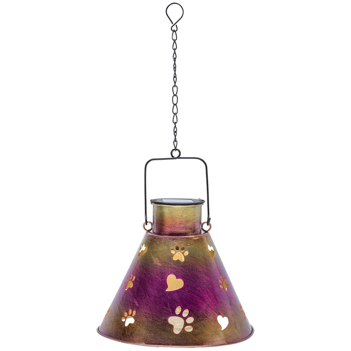 Under the soft, solar-powered glow of this hanging light, you delight in the fact that yours is a home full of animal lovers! With a colorful exterior complete with cutout hearts and paws for the light to shine through, this charming eco-friendly piece is ideal for your patio, garden, deck, or anywhere else you want to shine a light on animal causes!