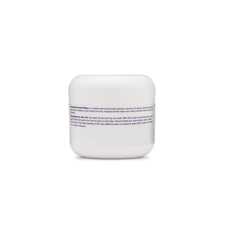 PawsGive Dental Wipes contain a solution with antimicrobial activities reducing the plaque, dental calculus and tartar buildup on pet’s teeth over time. PawsGive Dental wipes also reduce bacteria that cause bad breath.