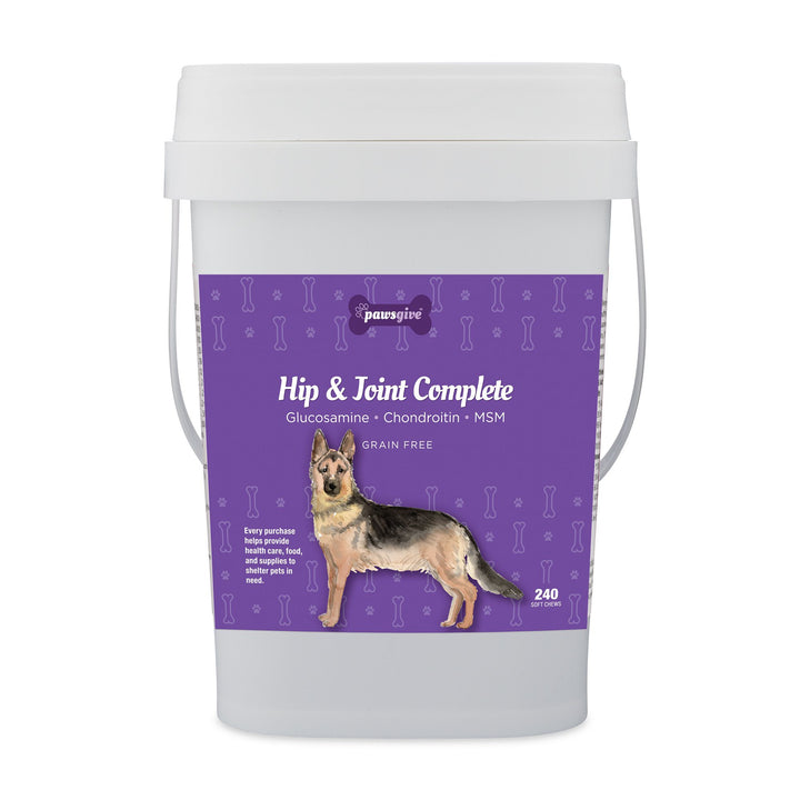 PawsGive Hip & Joint Complete supplement is a powerful, hypoallergenic soft chew for dogs recommended to support normal joint function, flexibility and healthy joint cartilage. Formulated with a complete and balanced blend of Glucosamine, Chondroitin, MSM, Creatine, Turmeric, Boswellia, Hyaluronic Acid, Vitamins, Minerals and Omega Fatty Acids in a great tasting chew dogs love!