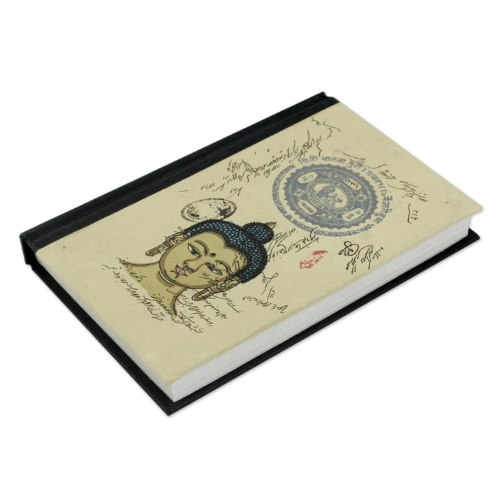 Ever serene, Buddha appears on the cover of this journal designed by Asha Prabha. Her composition is reminiscent of ancient papers from Mughal courts. The hardcover journal features 46 blank handmade paper pages.