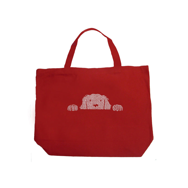 Whether you are staring at your own dog for hours and hours at a time, or watching endless dog videos online there is nothing cuter than a peeking dog :). The way they peek over a table or around a corner will absolutely melt your heart and immediately bring a smile to your face. Our Peeking Dog "Word Art' design is created out of the word Woof.