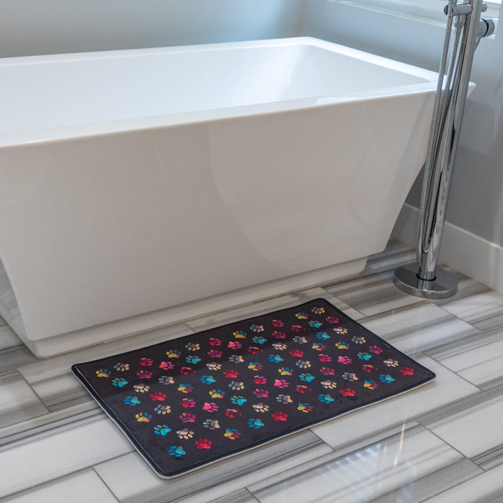 A soft, cushioned place to land your paws! This memory foam mat is a comfortable addition to your home -- either at the kitchen sink, entryway, or in the bathroom -- and stays put with the non-slip backing. Patterned in pretty paw print designs, the soft microfiber mat can be thrown into the wash when it's time for a refresh!