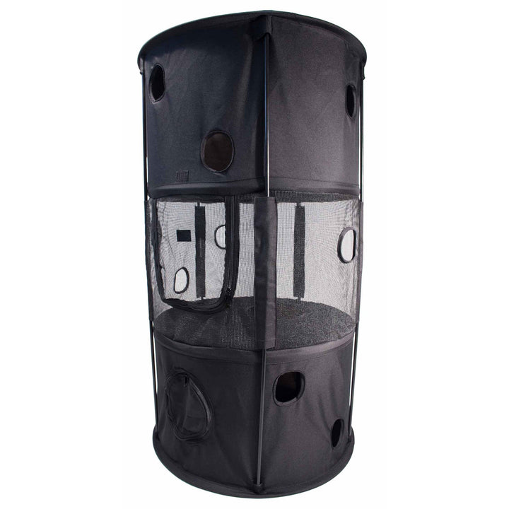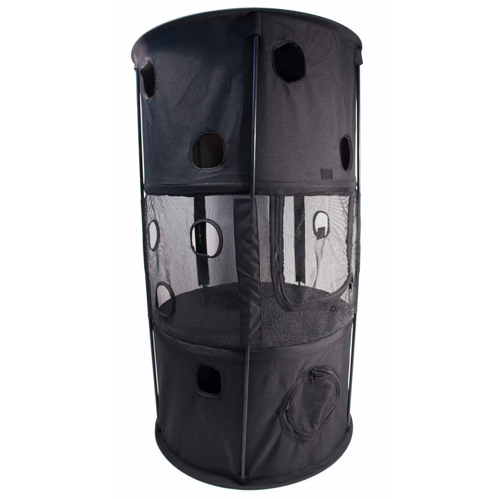 The Pet Life Climbertree circular obstacle collapsible travel Cat House is composed of heavy duty Nylon and mesh. The Climbertree is easy to install or setup compared to the bulkier conventional cat houses. Perfect for Travel, Indoor or Outdoor usages, simply folds and collapses and features durable collapsible fiberglass poles that easily attach to the 4 corners to hold up it's structure. Features an array of multiple zippered and circular entrances for interactive play on both the bottom and secondary levels. Great for lounging or interior play. Available in Multiple Colors.