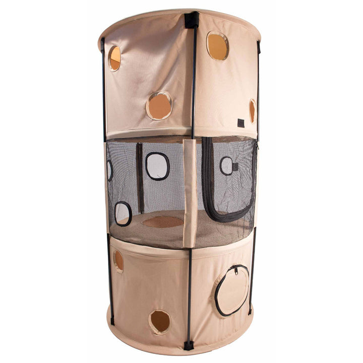 - Features Multiple Zippered Entrances and peak holes and levels for cat play and brain activity development