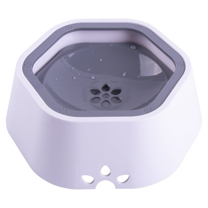 - Features a Splash Guard Protector that removes and Doubles as a Slow Dog Feeder with a Grid Bottom on the interior