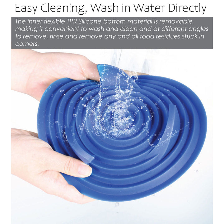 - Features a Removable Slow Feeding Flexible Silicone Bottom that peels off and bends for complete surface cleaning of all food residues