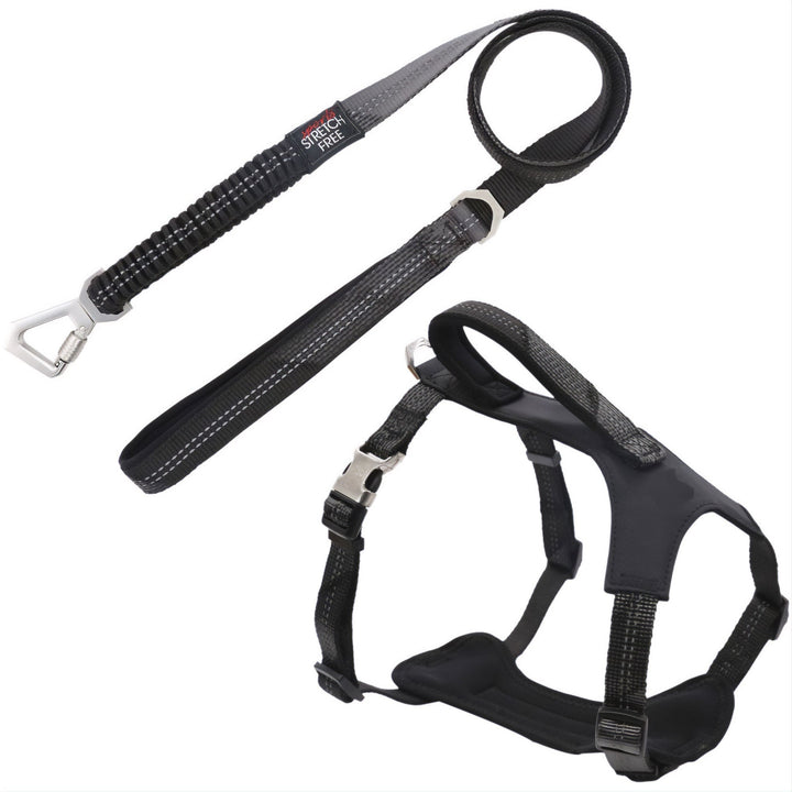 Pet Life® 'Geo-prene' 2-in-1 Shock Absorbing Neoprene Padded Reflective Dog Leash and adjustable Harness is composed of Geometrically patterned Nylon webbing with Dual-Reinforced stitching and Neoprene padding at the top and belly of the harness and leash handle for durability and comfort! The end portion of the Leash features a buffered and expandable looped elastic band that's designed to further place less tension around the chest while tugging or pulling for added comfort.