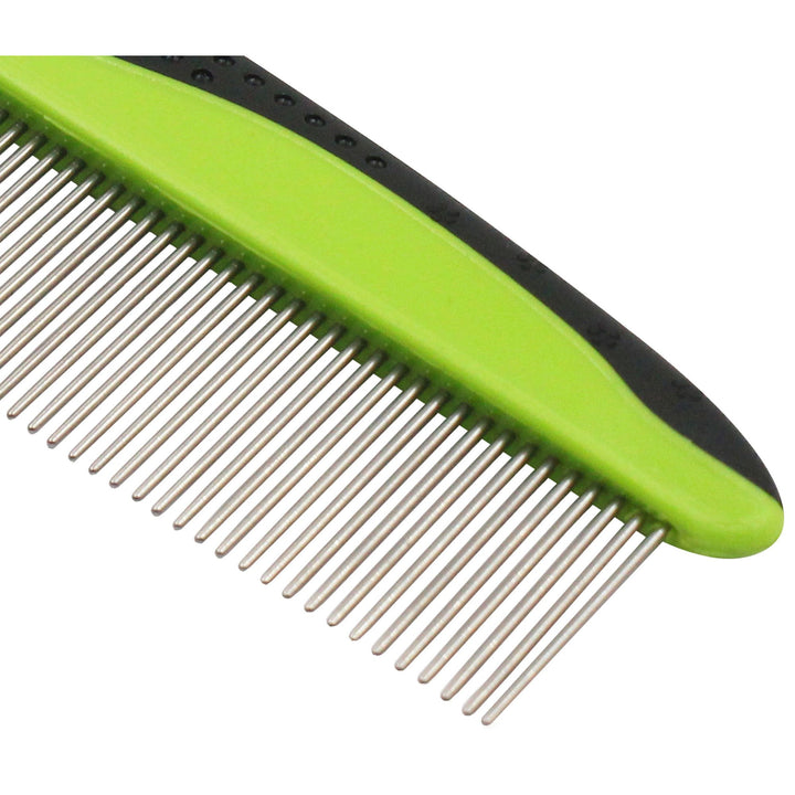 The Pet Life ® Grip Ease' Wide and Narrow Tooth Pet Comb features Dual-Spaced elongated Stainless Steel blades that are designed to brush their Top and Bottom coats and smoothens hair while removing Mats and Tangles. The Narrow Teeth are designed to remove Mats and Undercoat Fur, while the Wide Teeth are designed to remove stubborn Tangles and Knots. Extremely Durable and rust-proof and features a Rubberized Grips along the handle for added comfort and precision. Available in two Colors.