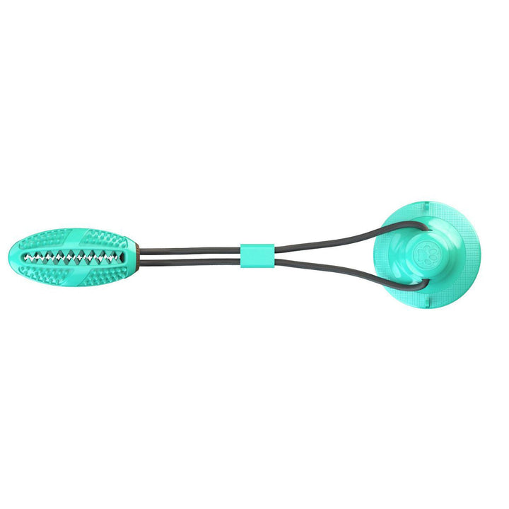 The football toy further features numerous ridges all around designed to massage gums and clean teeth by removing Plaque and Tartar. The Grip N' Play makes a fantastic self tugging toy that helps build muscle strength along the neck and shoulder areas. Features a large Suction cup on the other end with a pinch-to-release flap for convenient removal off hard surfaces. Available in Multiple Colors.