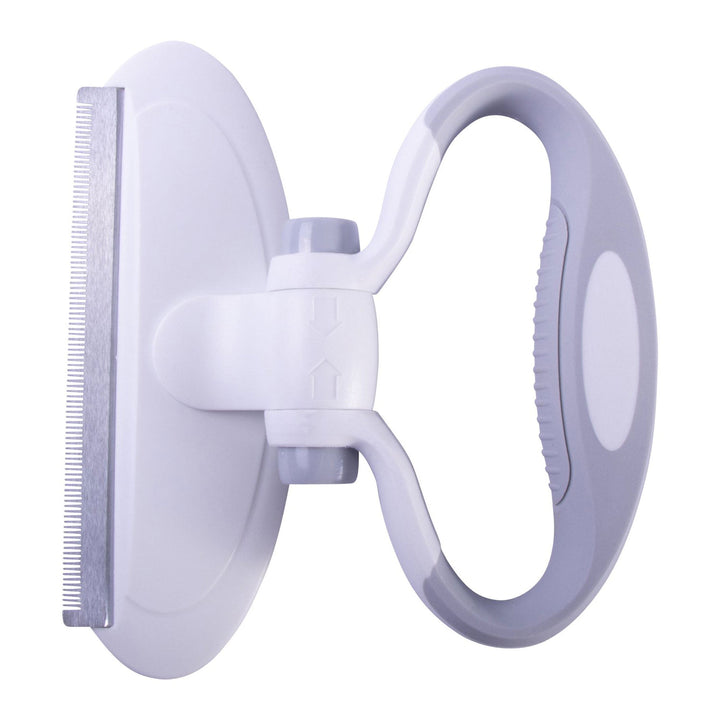 The Pet Life® 'Gyrater' Swivel Travel Deshedding Pet Comb features a Built-in customizable rotating handle hinge that both swivels and locks into place at the press of a button to your desired handle setting. This Comb offers both a Palm and Knuckle Handle grip options and features a contoured inner grip with a Rubber-like TPR material for added comfort while combing.
