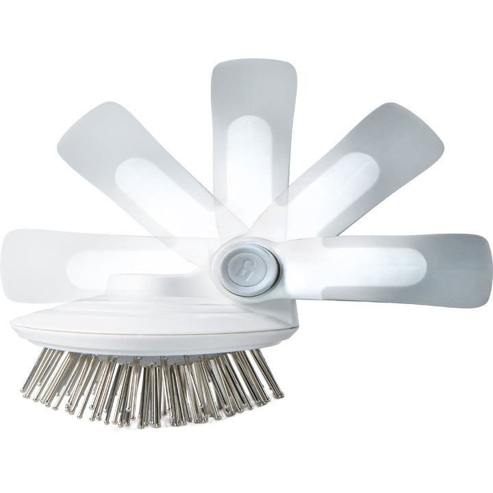 The Pet Life® 'Gyrater' Travel Swivel Pet Pin Brush features a Built-in customizable rotating handle hinge that both swivels and locks into place at the press of a button to your desired handle setting. This Brush offers both a palm and knuckle handle grip options and features a contoured inner grip with a Rubber-like TPR material for added grip and comfort while brushing. Designed to place less Stress on the hands and wrists during usage!