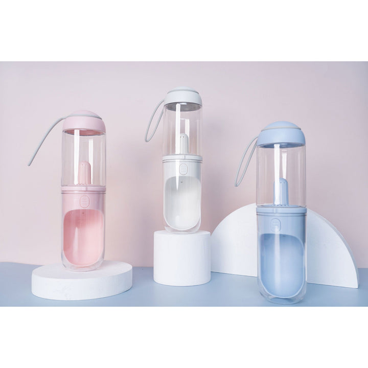 The inner chamber holds up to 12.17 ounces of water. Water releases into a curved watering tray that's designed to help prevent splashing and spilling of water during hydration while easing neck strain. Features a unique and sleek body shaped design with an included built-in wrist band strap for added safety and security. Perfect for Travel or Hiking.