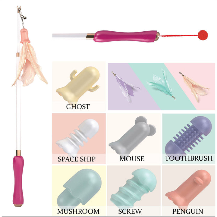 The Pet Life® 'Wander-cat' Customizable and Extendable Multiple Attachment and Laser Cat Teaser provides an all-in-one cat toy experience! The Wander-Cat Teaser Features 7 unique interchangeable heads with fun and unique character shapes and 3 interchangeable feathers that connect to the interchangeable heads that provides the user plenty of Cat Teasing options.