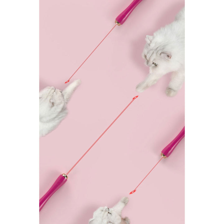 This Cat Teaser also features an extendable neck that extends from 14 to 24 inches in length for the perfect desirable length every time that can be used while standing or sitting. The bottom portion of the wand features a Built-in Low-Frequency Laser that cats just love to chase around providing the ultimate teasing experience. Requires and Includes 2 - AAA batteries for approximately 3 to 6 months of usage. Features a curved and contoured grip handle for easy and convenient control.