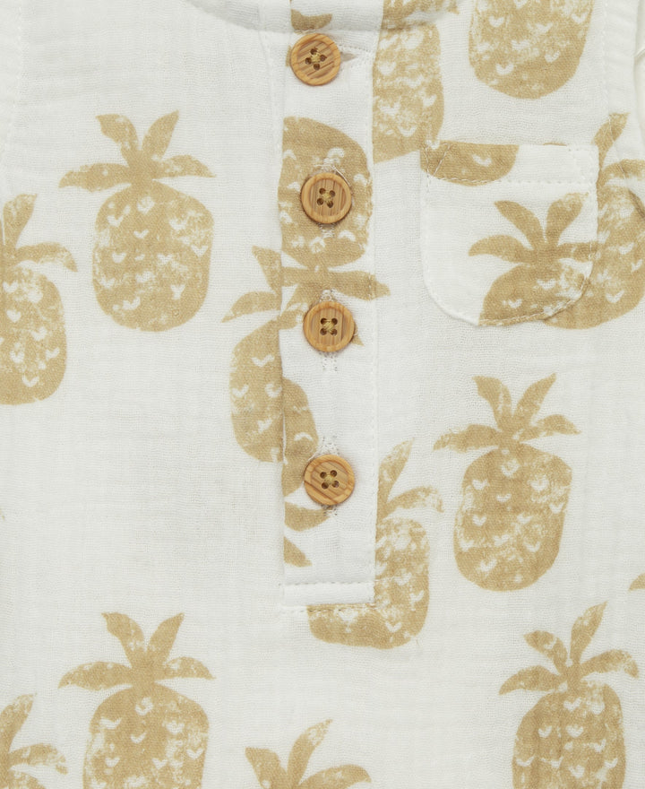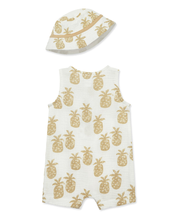 - This boys' pineapple cotton gauze romper and matching hat is sweet from the inside out!