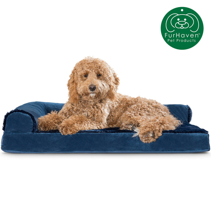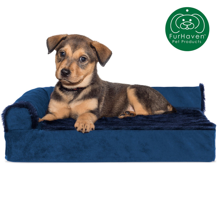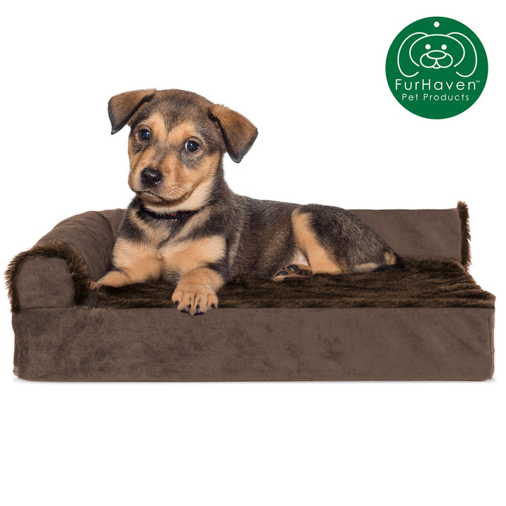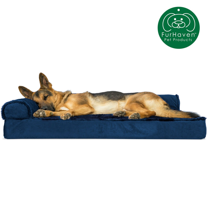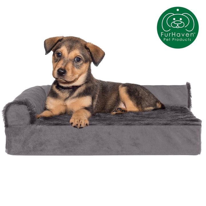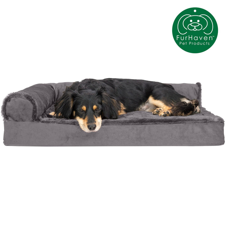 Pamper your pet with a new FurHaven Deluxe Chaise Lounge! A luxuriously soft plush sleep surface is complemented by velvet covered bolsters and gusset. Ultra plush faux fur provides a snuggly soft sleep surface and trims the edges of the bolster for a chic flair. The L-shaped bolsters support your pet's back and hips, providing additional support. The L-shape also provides the perfect nook for pets that like to nest into comfort.