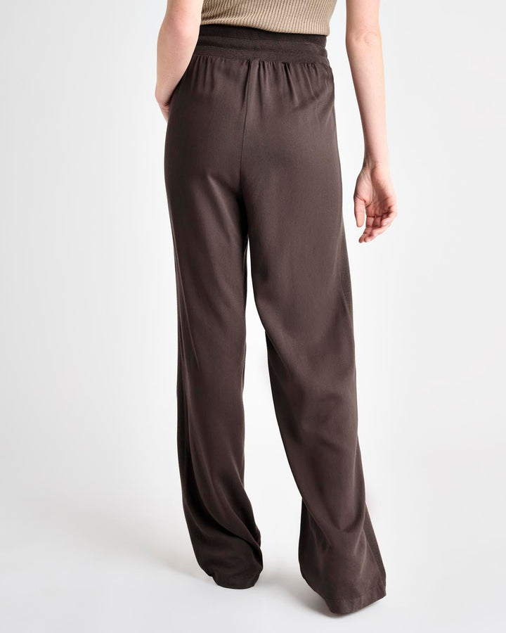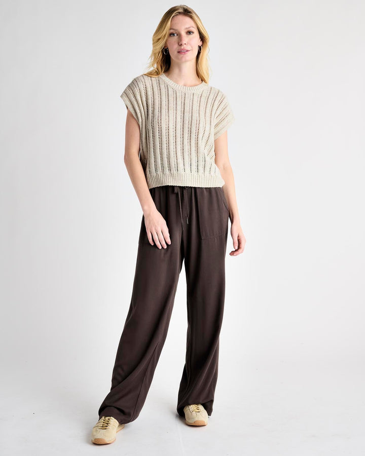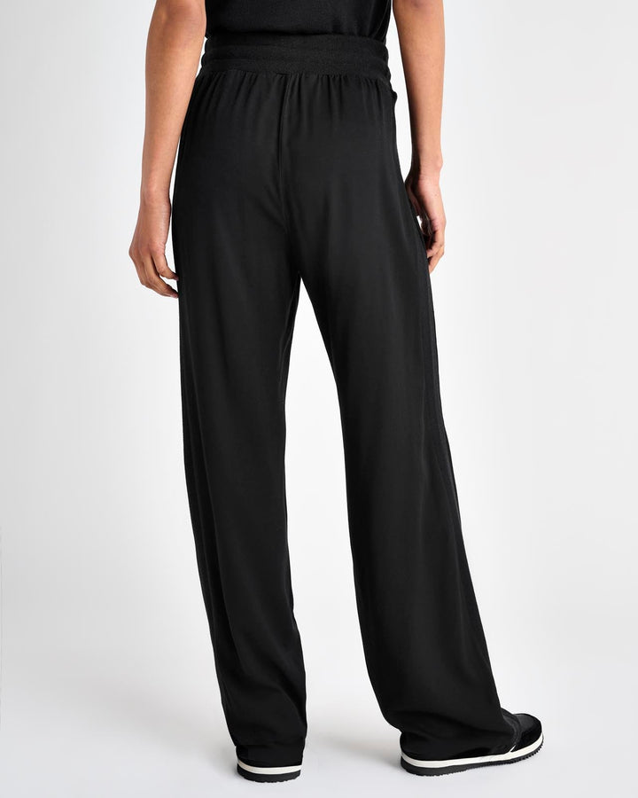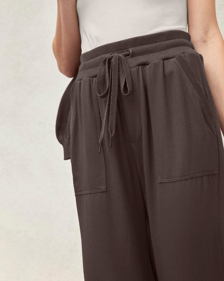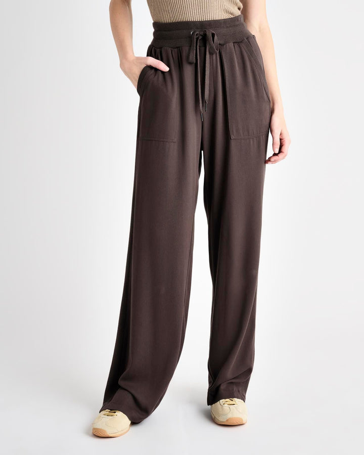 Indulge in everyday ease with our Rafe Wide Leg Pant. This high waisted pair has a drawstring waist and ribbed detailing at the waistband, pockets and side trim. Plus, there are pockets on the front and back for added comfort.