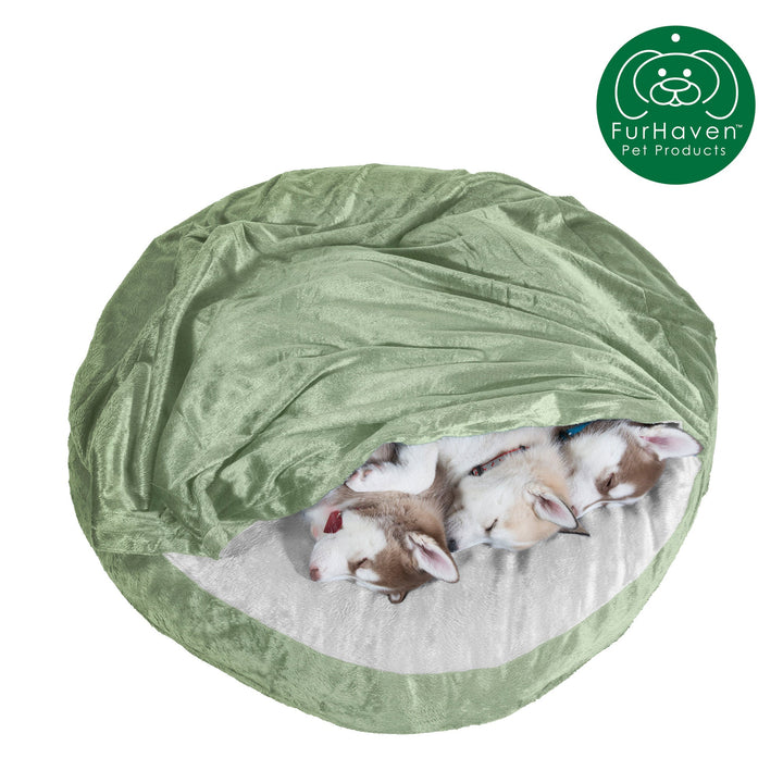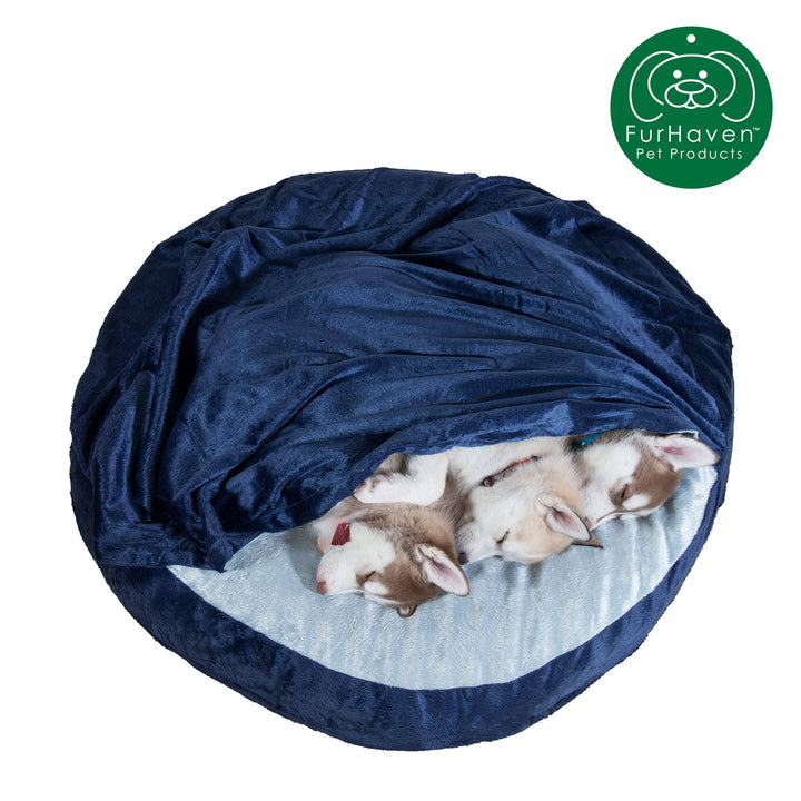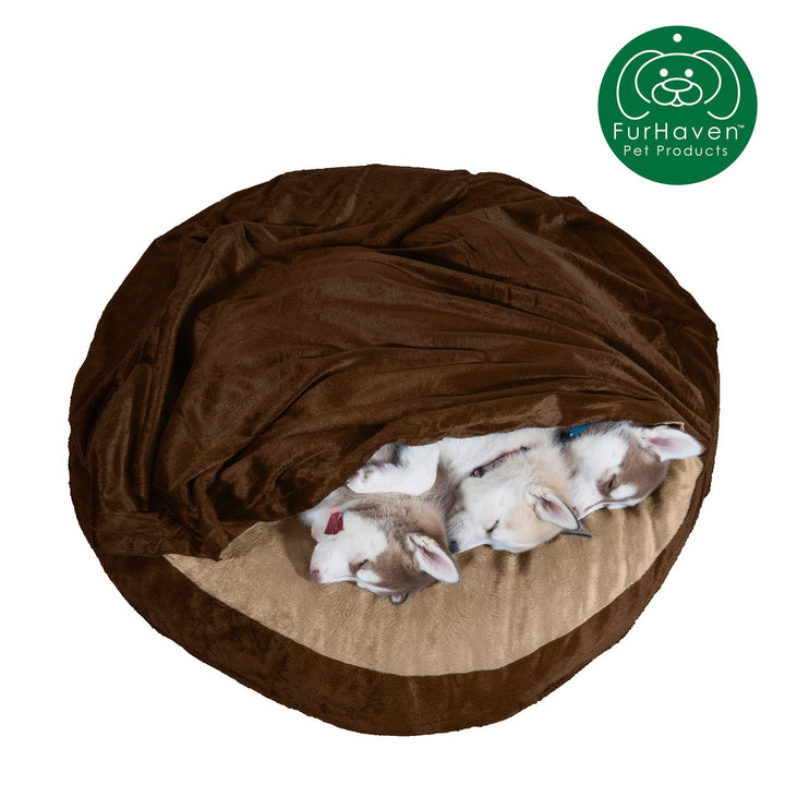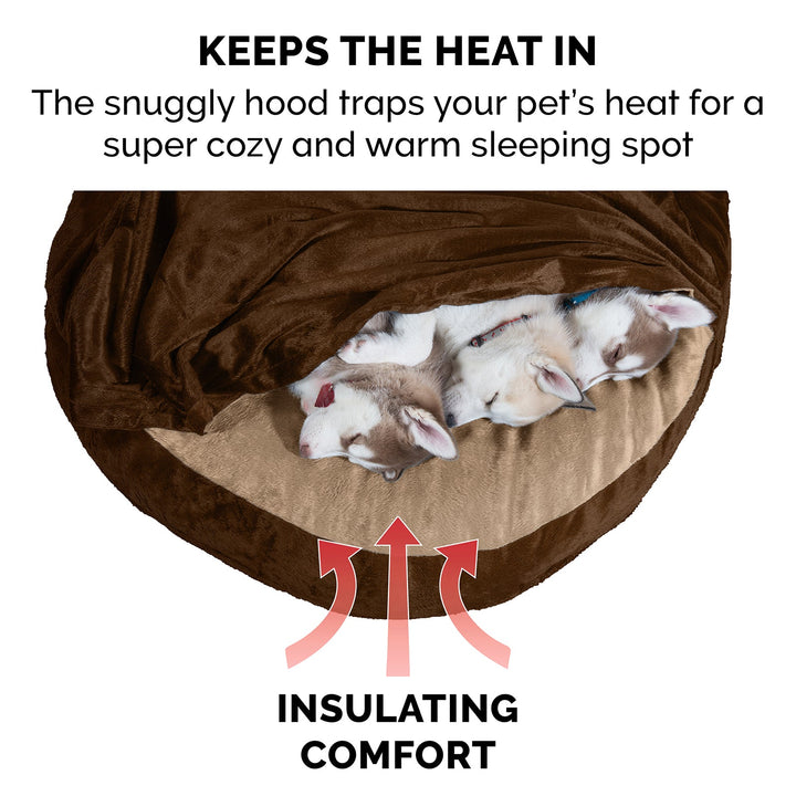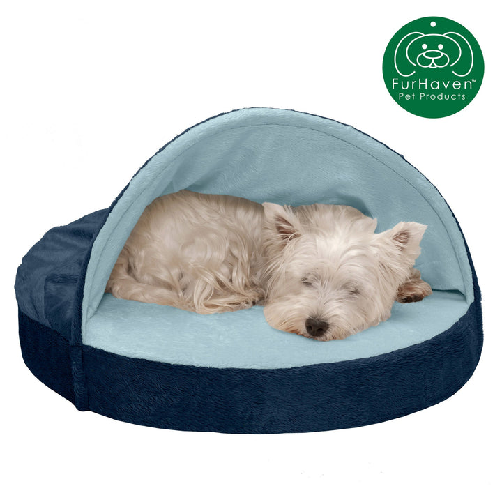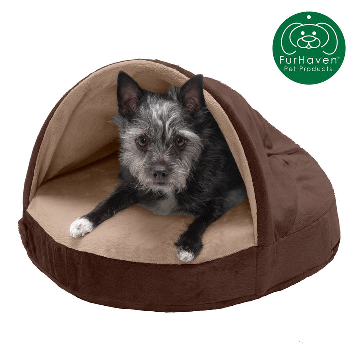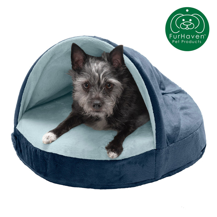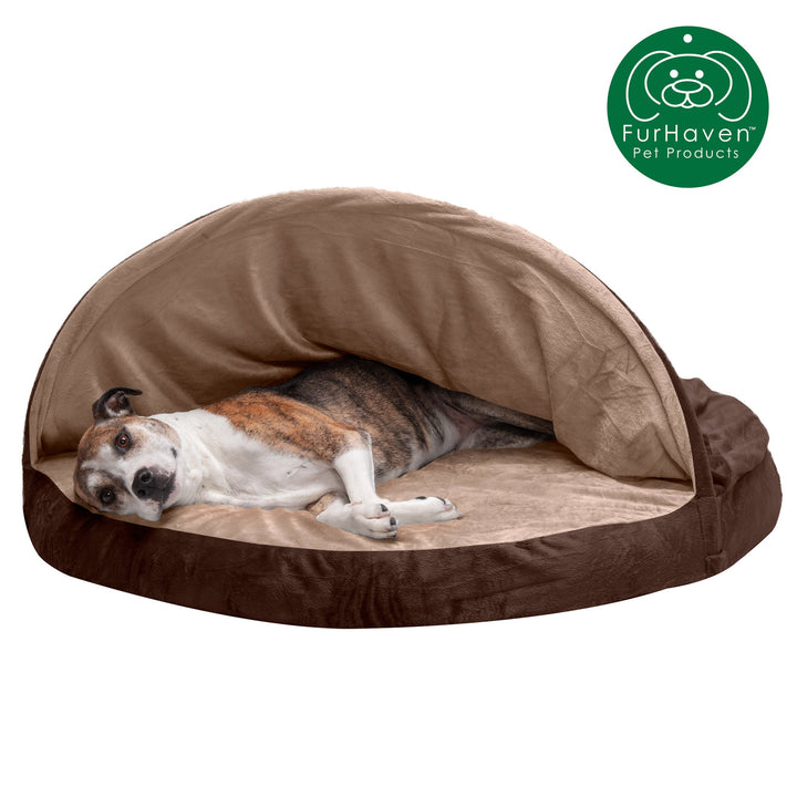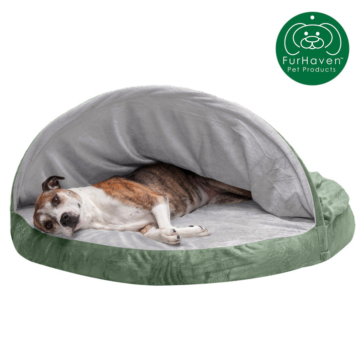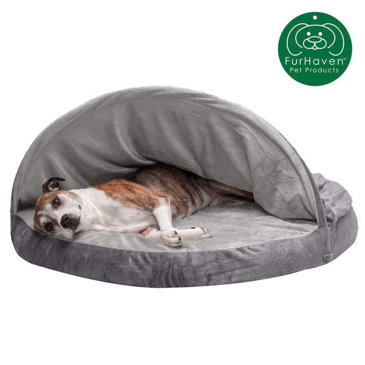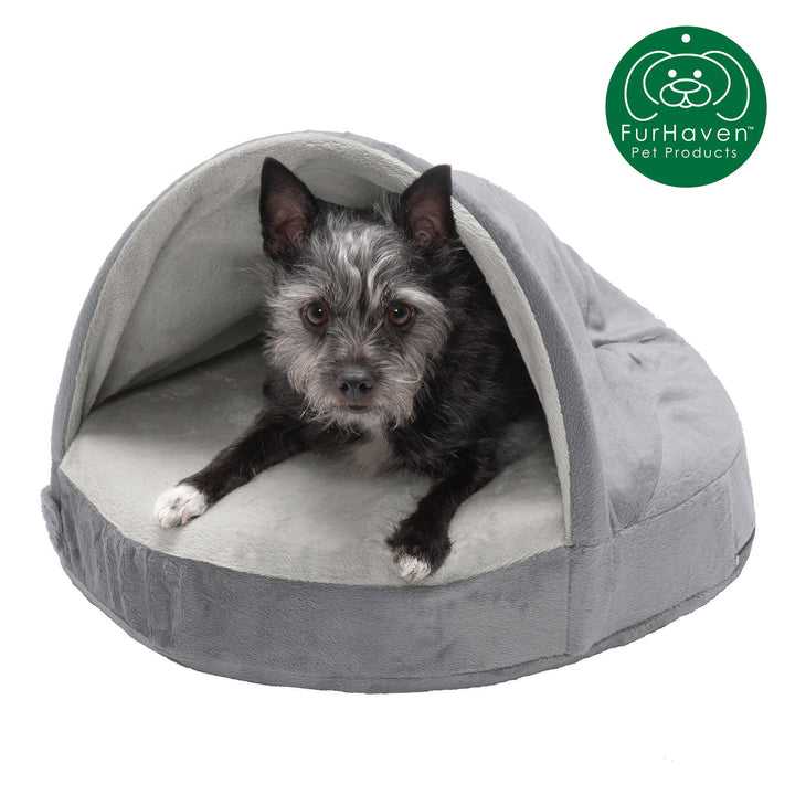 Cozy comfort with a cooling twist! Pets who love to burrow under the covers enjoy the FurHaven Snuggery Gel Top Pet Bed. This bed features a soft extra layer of fabric over the sleep surface that can be used as traditional burrow "blanket" or (by inserting a provided flexible hoop) as a private "cave" for your pet. The plastic hoop helps your pet get under the soft hood but does not stay up so that your pet will stay covered and cozy! Private, snuggly and stylish, the soft Microvelvet fabric will blanket your pet in comfort while the cooling gel top foam core soothes them to sleep.
