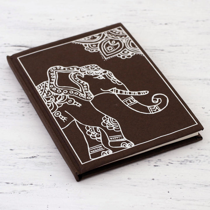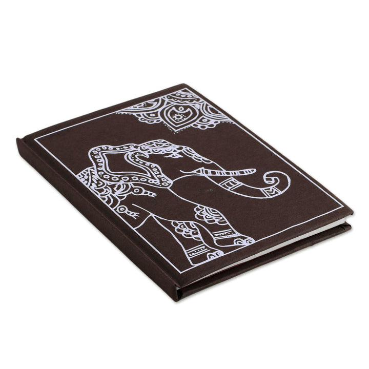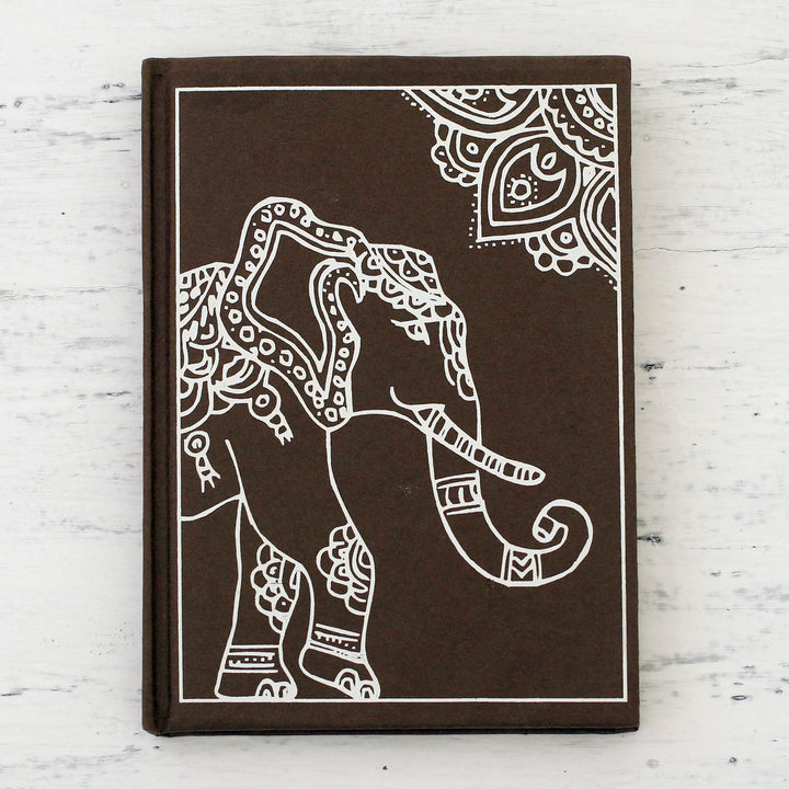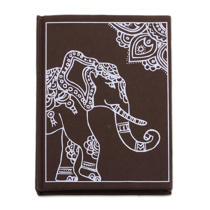 Royal Gajraj India Elephant-Themed Handmade Paper Journal in Mahogany