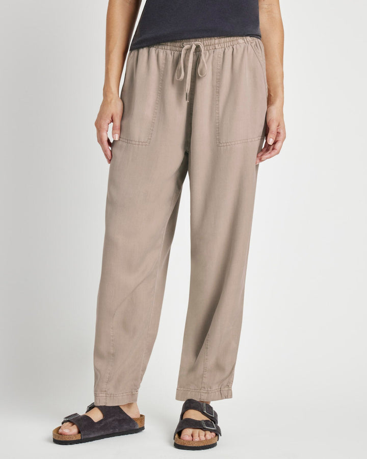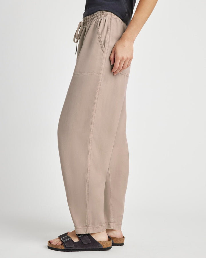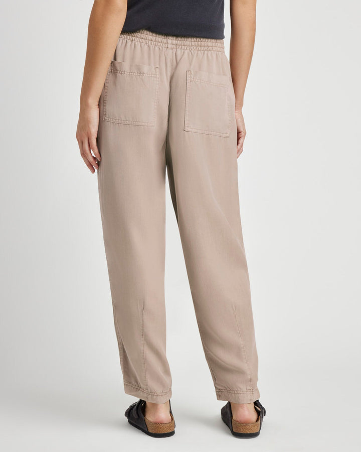 Step into comfort and style with the Ryan Pant, crafted from 100% lyocell for a lightweight feel. The pull-on design with a drawstring waist offers an effortless fit, while the barrel leg shape and ankle-grazing length create a relaxed, sophisticated silhouette. Featuring convenient front and back patch pockets, this pant combines practicality with polished appeal, making it your go-to choice for an elevated casual look.
