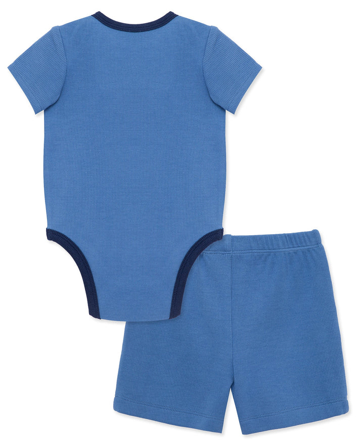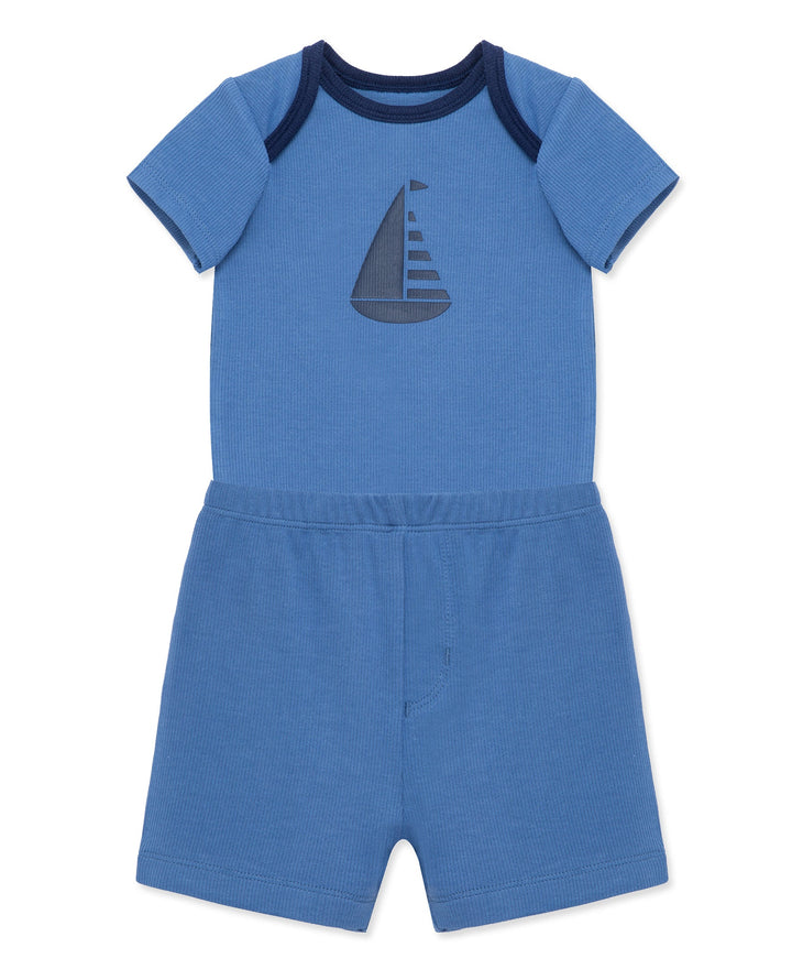 - Your little sailor will be ready to set sail in his newborn baby boys' shorts set, crafted from seasonless bamboo and organic fabric. This set includes the sailboat short-sleeve bodysuit and matching blue shorts to complete the outfit!