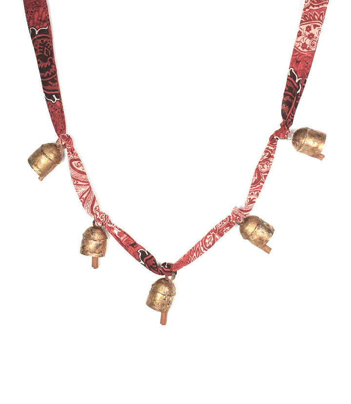 This darling garland is perfect for doorways, windows, dorm rooms and more, combining the bright, cheerful look of upcycled sari fabric with the delicate chime of 5 small handcrafted bells.