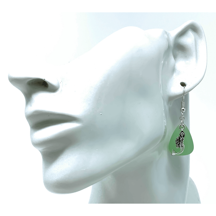 Introducing our Sea Glass Silver Mermaid Earrings. These pair of enchanting yet inexpensive mermaid earrings features a mermaid with the lower half of a fish and the torso and head of a woman on each earring. These pair of silver dangle earrings will make you look stunning with any outfit you wear.