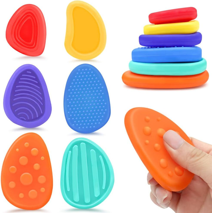 Sensory Stone Fidget Toys, 6 Pcs Quiet Worry Stone for Kids/Adults Calming, Silicone Stress Toys for Anxiety/Autism/ADHD Relief