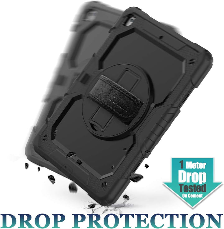 SEYMAC stock Case for iPad 9th/ 8th/ 7th Generation 10.2'', Shockproof with Screen Protector, Pencil Holder [360° Rotating Hand Strap] & Stand, for iPad 10.2 inch 2021-2019