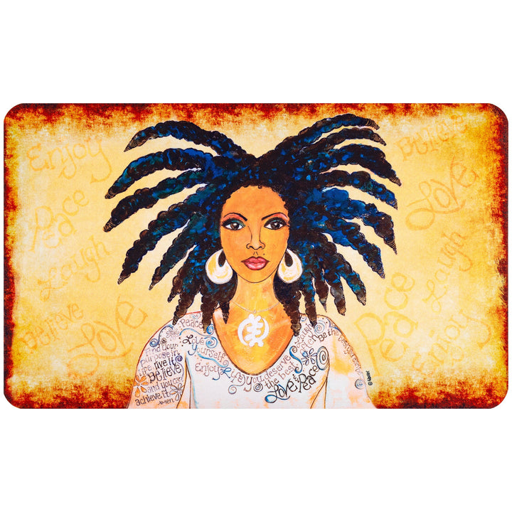 This Shades of Color floor mat is an all-purpose durable floor mat for any sort of indoor use! It adds to the room, and features amazing designs, created by incredible African American artists. This piece of floor art has a polyester top with rubber backing to keep it in place, and exudes one-of-a-kind charm with the variety of Afro-centric styles.