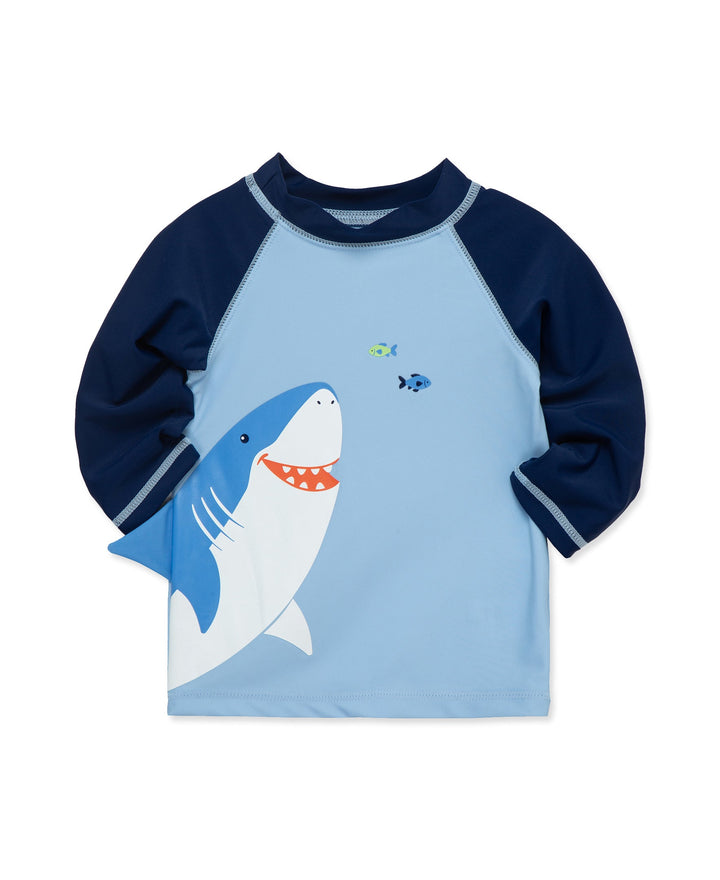 - This boys' long-sleeve rashguard, crafted from UPF 50+ fabric, is a fin-tastic pick for a beach day! Complete the set with our coordinating boys' swim trunks.