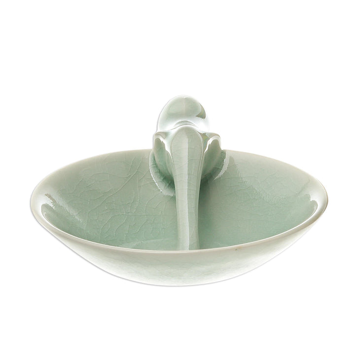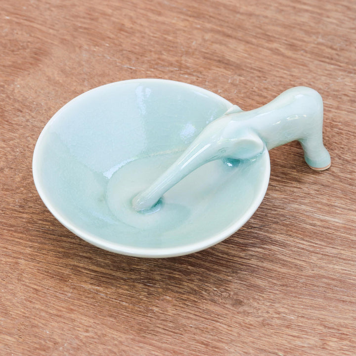 Finished with a crackled green celadon glaze, this great addition to your home is presented by Penpan. Crafted of ceramic, a charming little elephant sips from a bowl in this beautiful incense holder from Thailand. This home accessory is intended for incense cones.