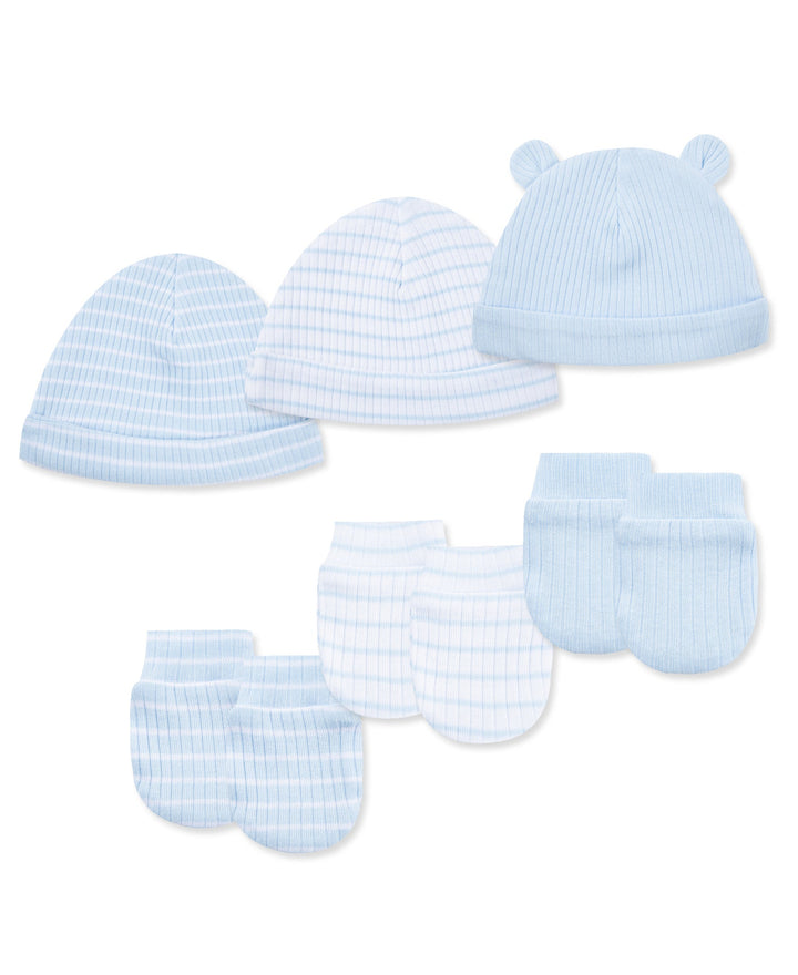 - Dress your little explorer in snuggly hats and matching mittens. This newborn baby boys' set includes three hats and 3 matching mittens made from premium organic cotton.