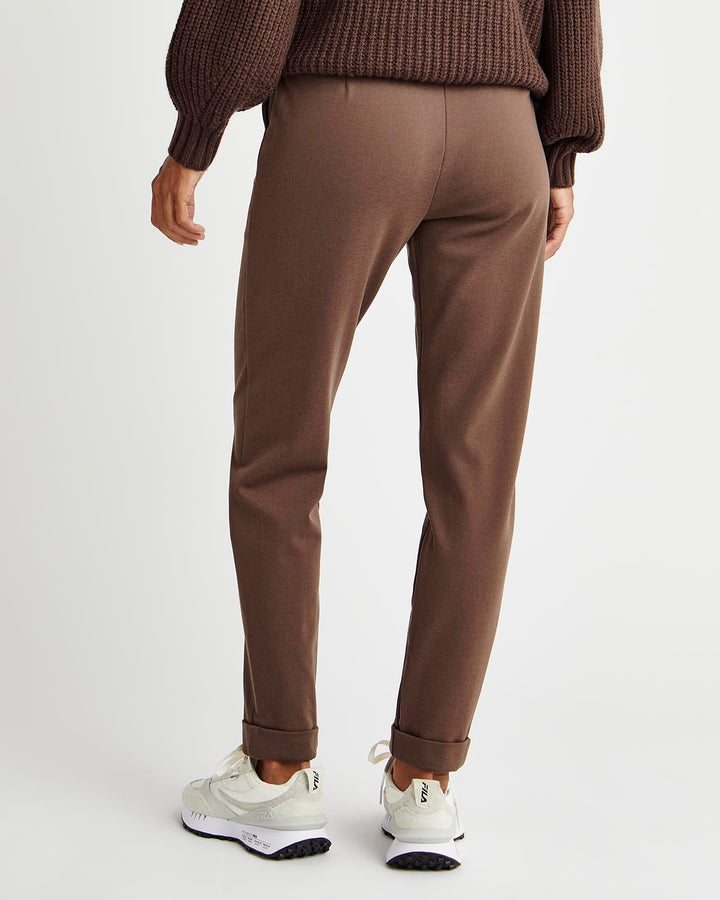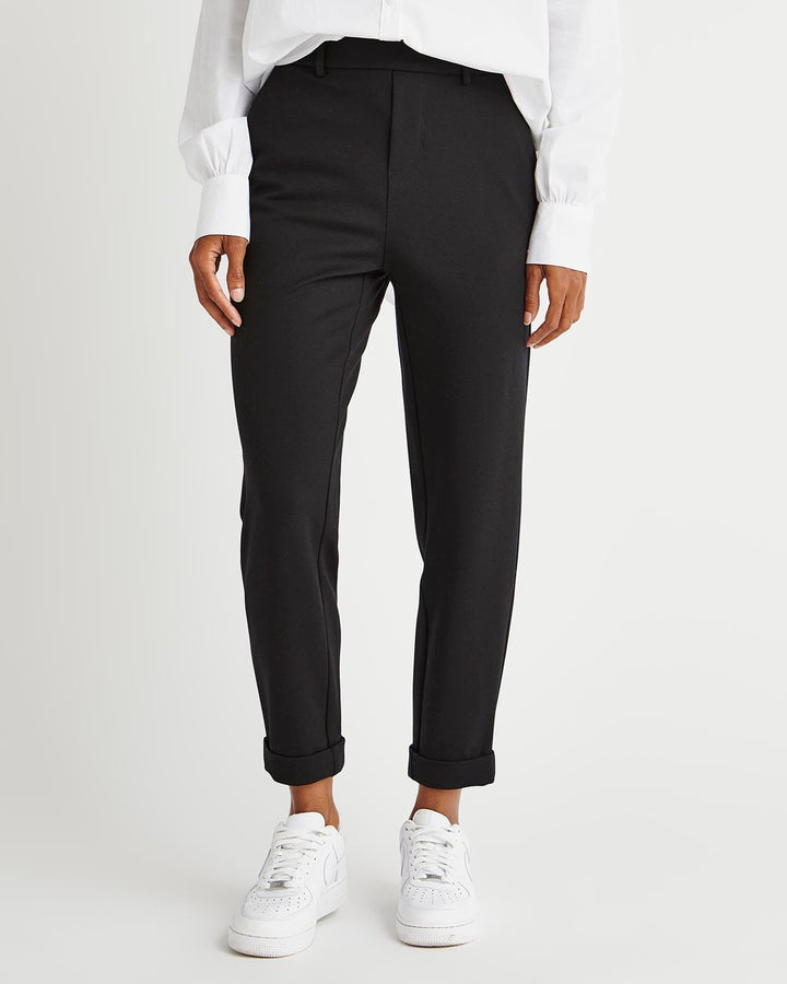 We teamed up with @cellajaneblog's Becky to bring you a versatile capsule collection of elevated everyday essentials designed to be mixed and matched for endless outfits. Tailored looks are made easy with this Fitted Trouser. Done from a wool spandex blend, this high-waisted pant is made in a slim fit with a straight leg and features an invisible side seam zipper, belt loops and side pockets. Its ankle-length hem is cuffed for an undone finish that still feels polished for every day. It looks effortless topped with an oversized sweater.