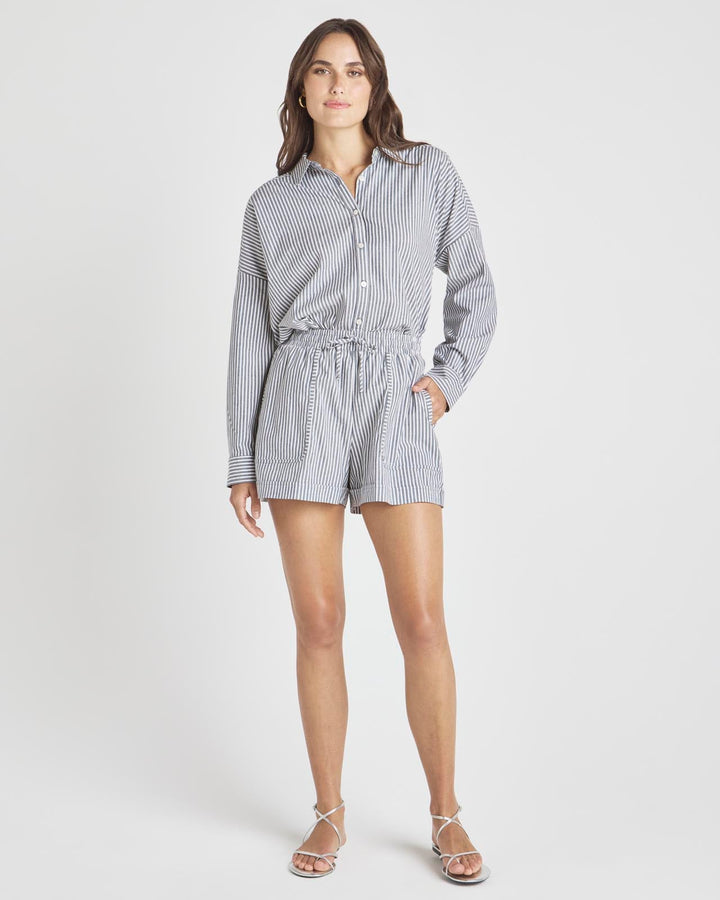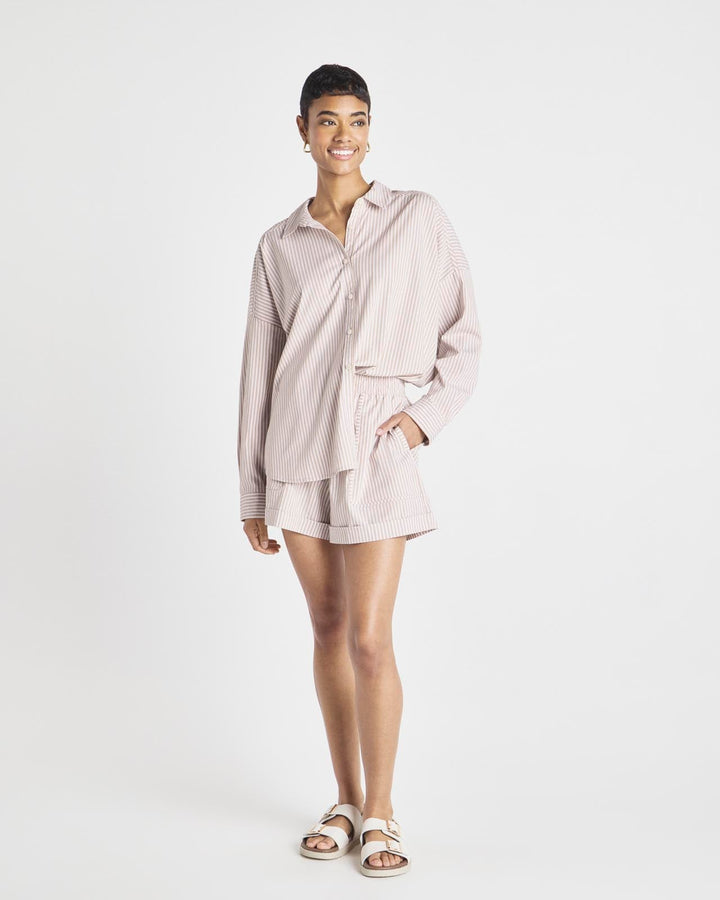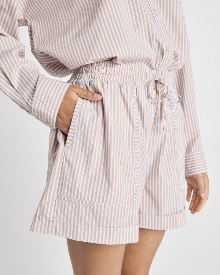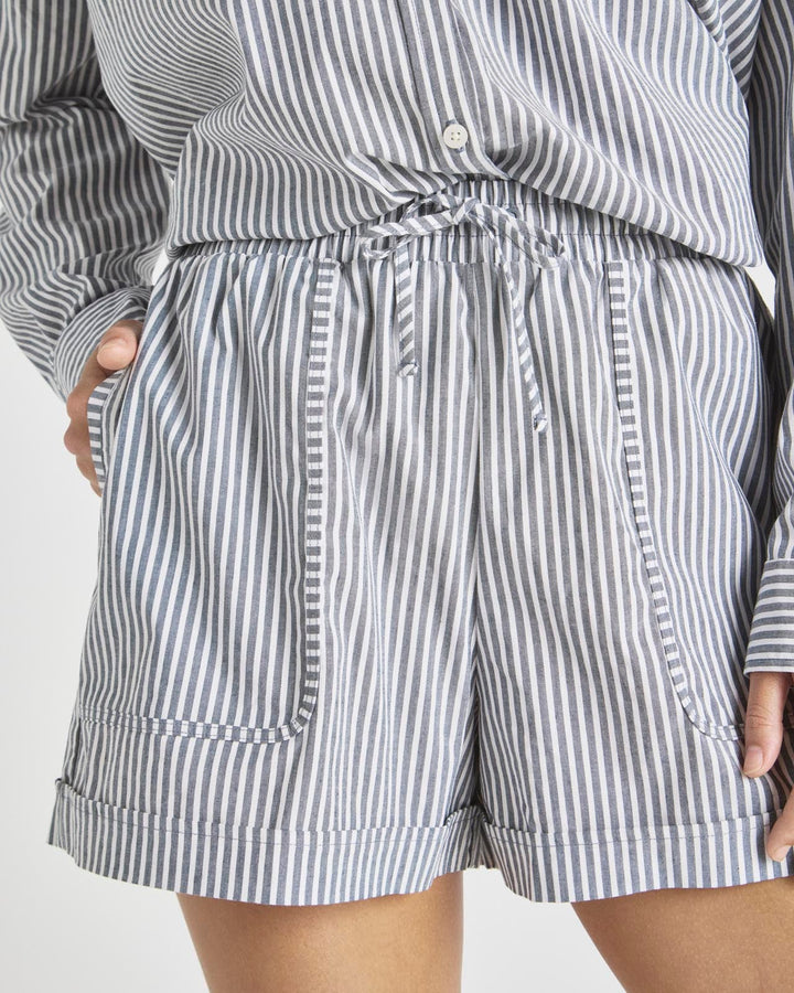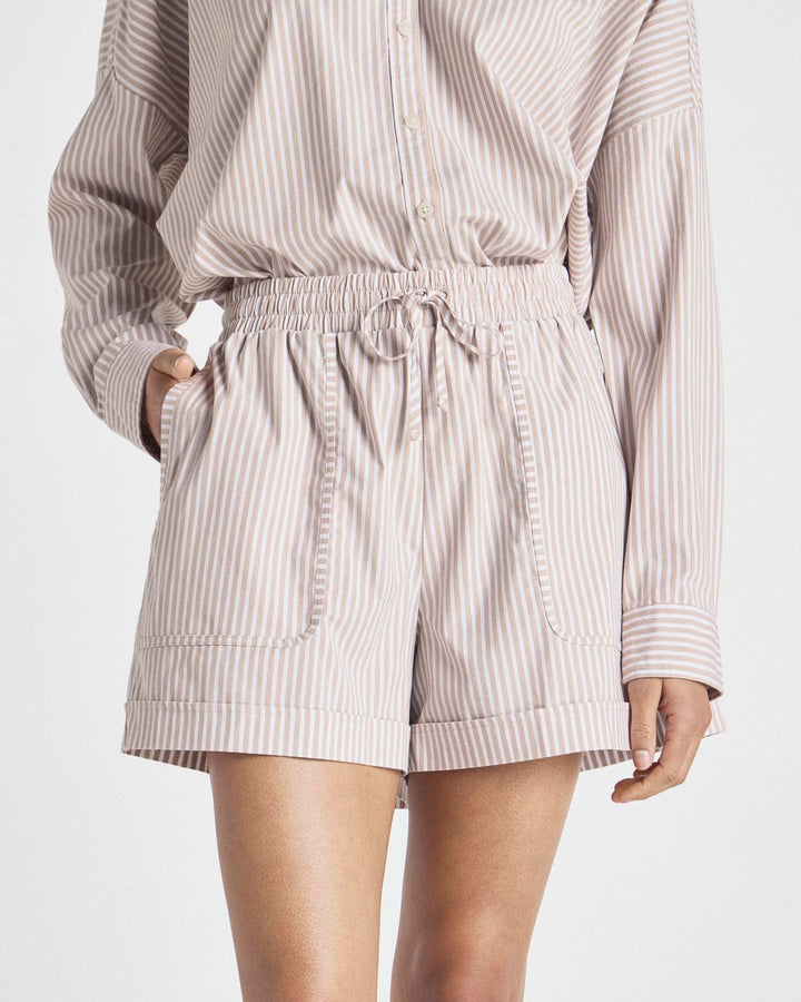 Channel @Cellajaneblog’s signature minimalist style with this collection of elevated essentials designed to help you transition into the season with ease. When the weather warms up, reach for this pull-on short with a high waisted drawstring and oversized patch pockets. Made from crisp cotton poplin with elevated stripes and a finished hem. Match it to the Splendid x @Cellajaneblog Striped Poplin Button Down.