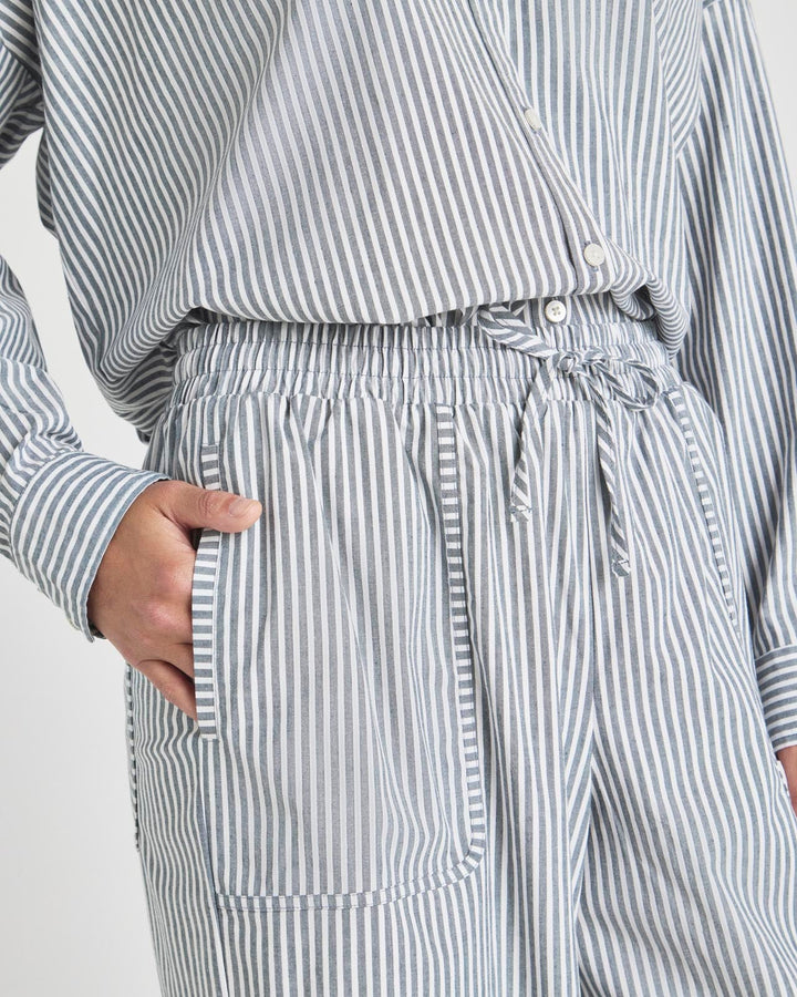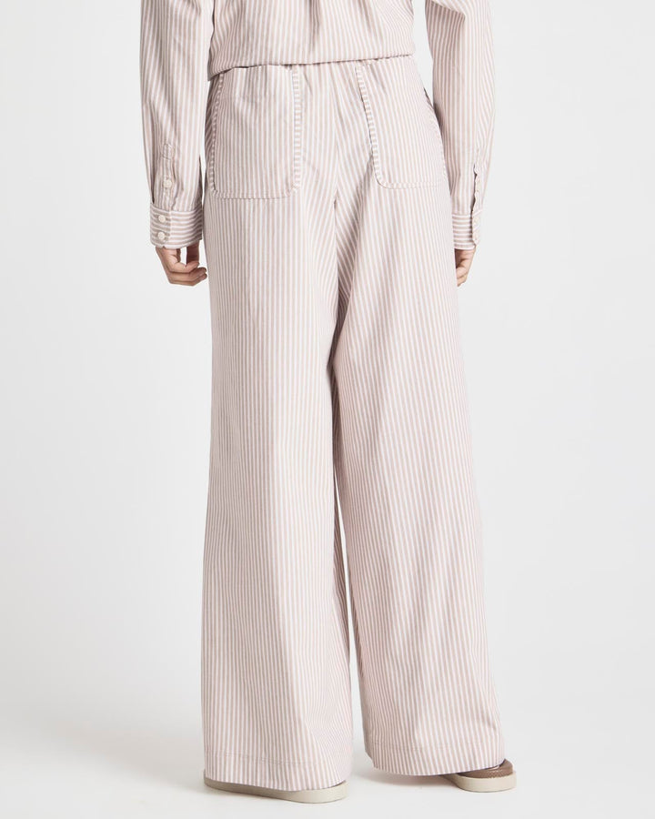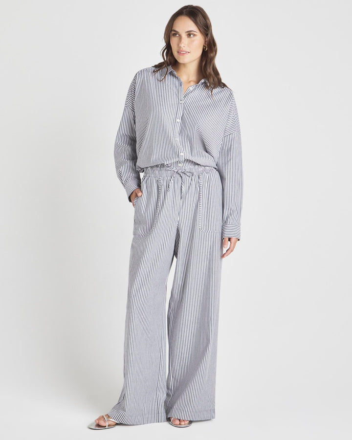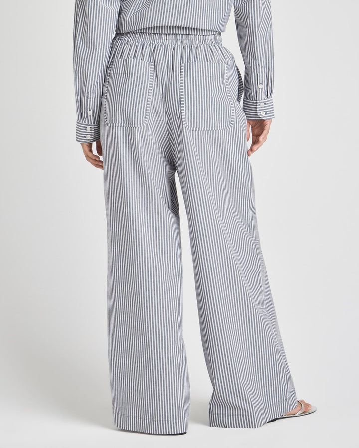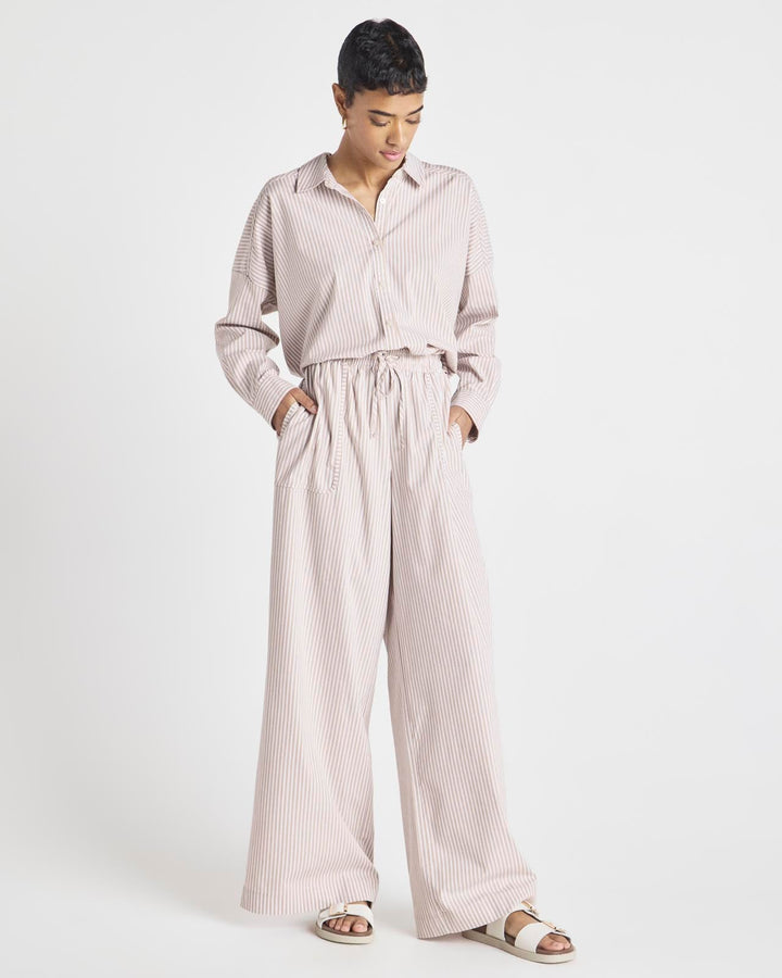 Channel @Cellajaneblog’s signature minimalist style with this collection of elevated essentials designed to help you transition into the season with ease. Made from cotton poplin with charming stripes, this wide leg pant will leave you swooning. It's topped with a stretch drawstring waist and roomy patch pockets. Plus, that relaxed wide leg silhouette can be dressed up or down. Match it with the Splendid x @Cellajaneblog Poplin Button Down.