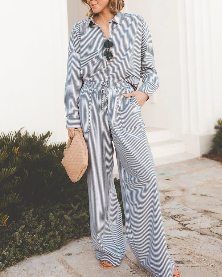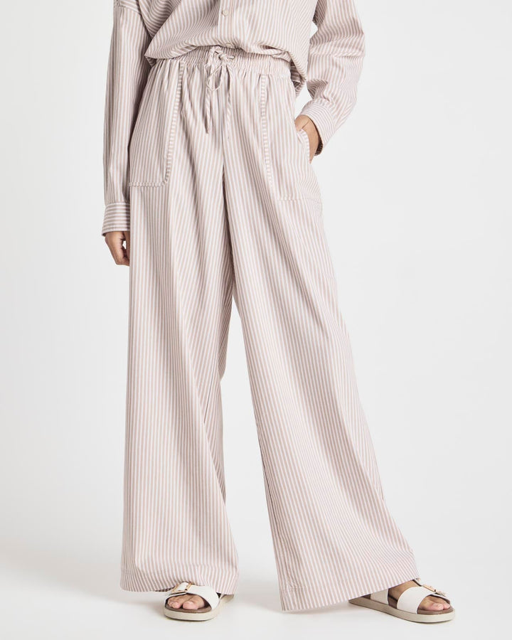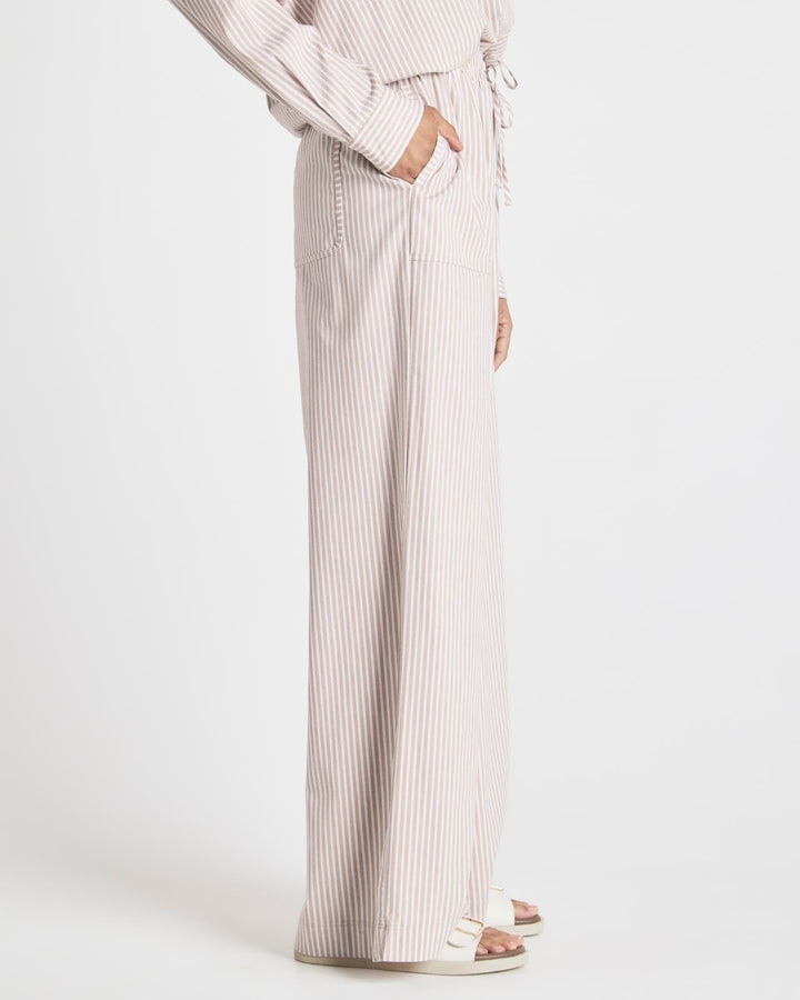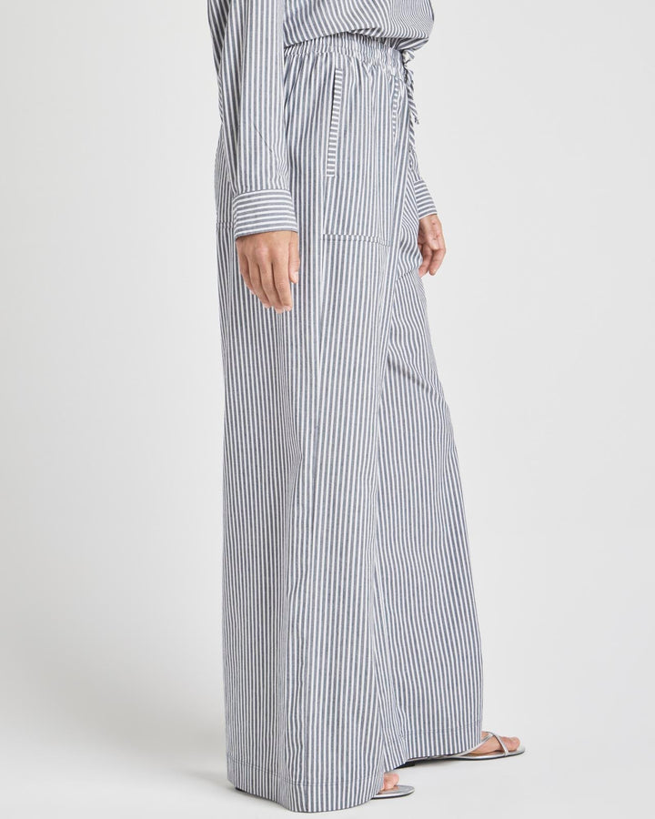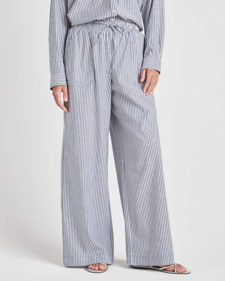 Channel @Cellajaneblog’s signature minimalist style with this collection of elevated essentials designed to help you transition into the season with ease. Made from cotton poplin with charming stripes, this wide leg pant will leave you swooning. It's topped with a stretch drawstring waist and roomy patch pockets. Plus, that relaxed wide leg silhouette can be dressed up or down. Match it with the Splendid x @Cellajaneblog Poplin Button Down.