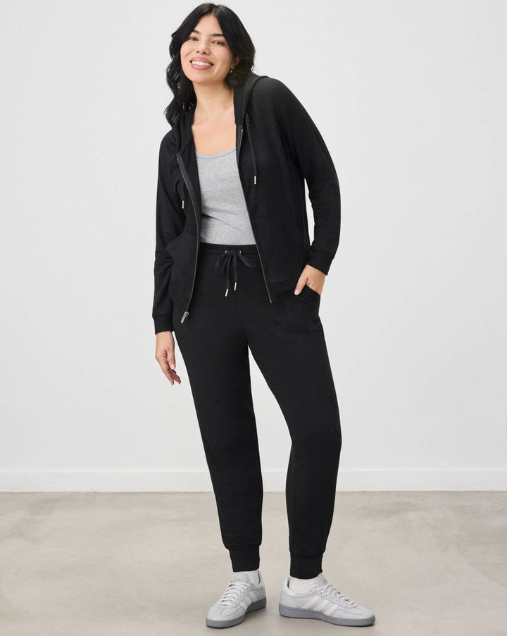 For a snuggled-wherever-you-go feel, reach for our Supersoft Brushed French Terry Jogger. With its drawstring waist, front pockets and cuffed ankle, this women's jogger pant has your back during work, home, weekends, travel and everything else life throws your way. Some say it’s made of magic, we say it's our Supersoft fabrication -- made with premium micromodal fibers that are triple-brushed for next-level softness. You have to feel it to believe it! It’s comforting, it’s classic, and yes -- it’s really, really soft.