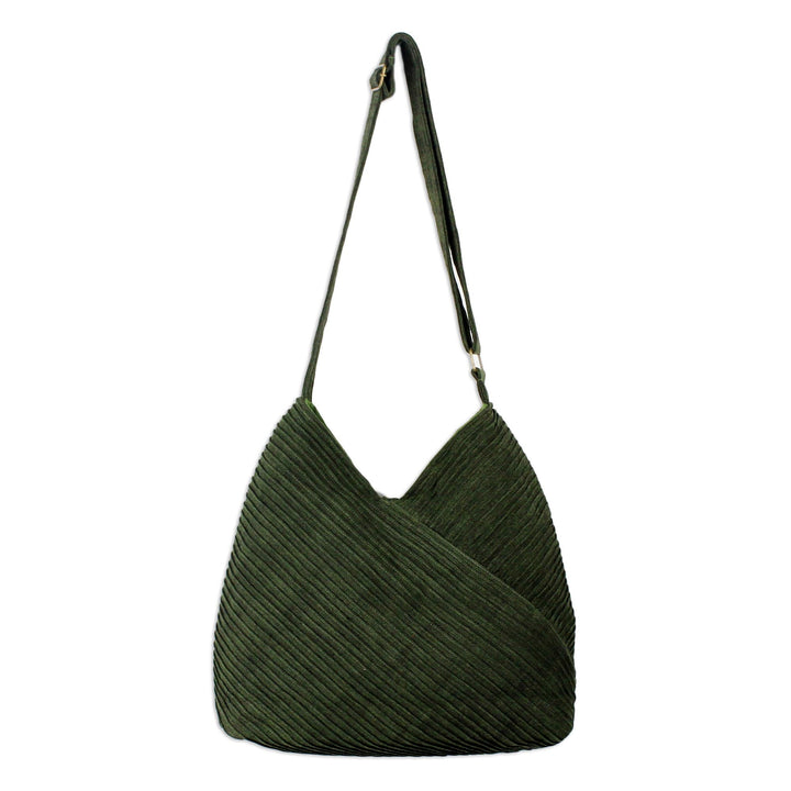A beautiful bag that you can take anywhere. Vinita designs this bag with a removable coin purse to add versatility. There are two exterior camouflaged pockets. A fully-lined interior includes two open pockets and a zipper pocket. It has an adjustable shoulder strap and an ornate rain tree wood button closure.