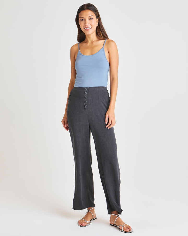 Keep it classy and casual in our Tessa Pant. Made from a linen blend, this easy straight leg pant has a comfy stretch waist with an exposed button fly that offers a clean sophisticated look for every day. It's the the ideal summer pant to pair with a tee or tank.