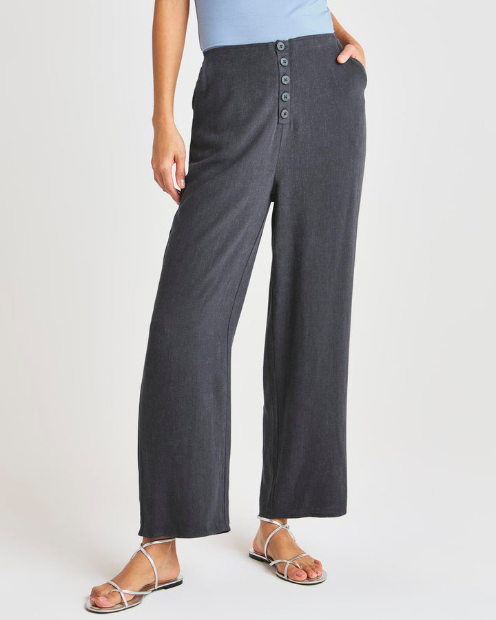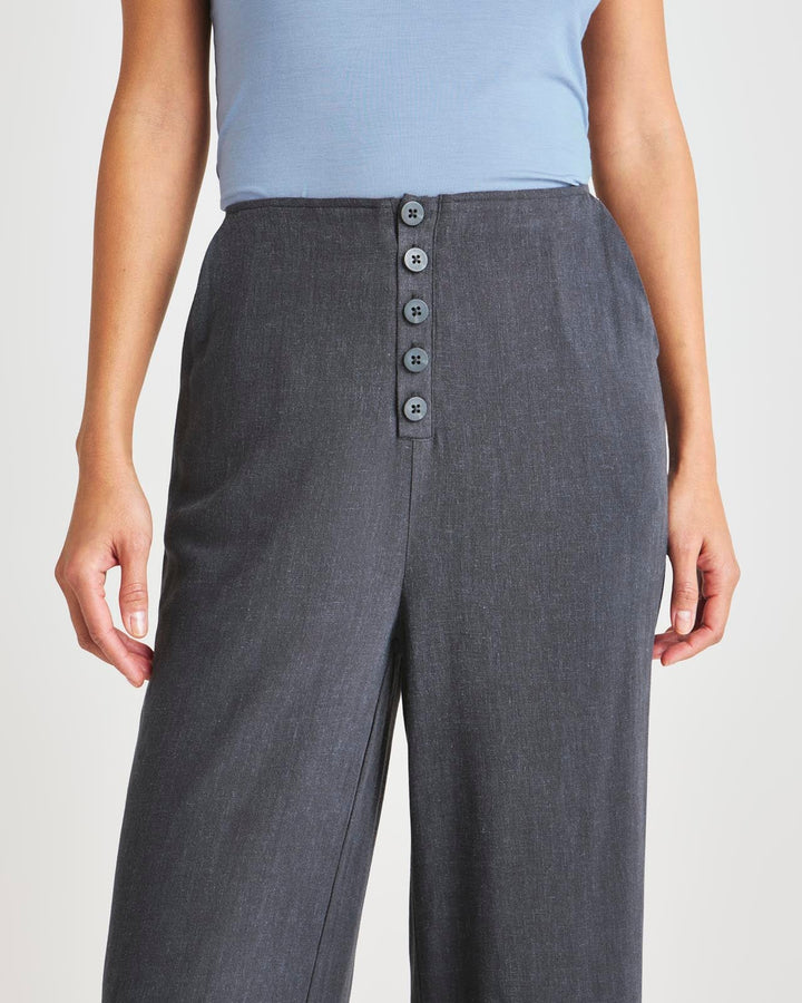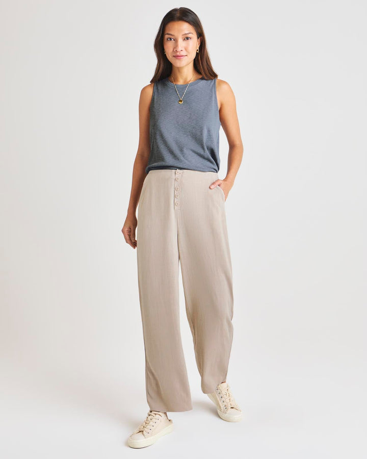 Keep it classy and casual in our Tessa Pant. Made from a linen blend, this easy straight leg pant has a comfy stretch waist with an exposed button fly that offers a clean sophisticated look for every day. It's the the ideal summer pant to pair with a tee or tank.