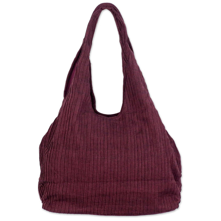 Thai Texture in Wine 100% Cotton Textured Shoulder Bag in Wine from Thailand